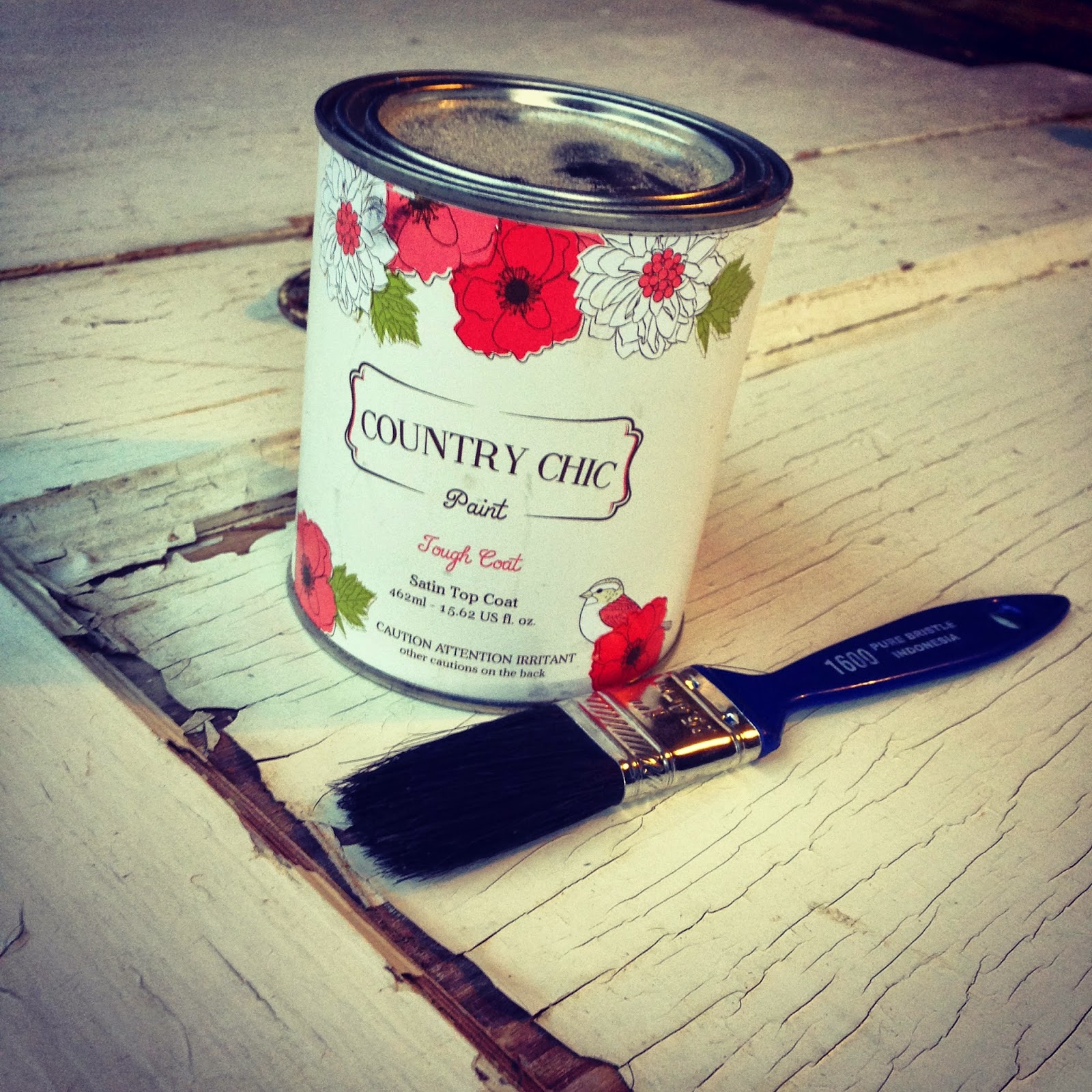 Well, except that it is more than likely painted in lead paint and tends to spread bits of chippiness wherever it goes. Like little sprinkles of happy, only I really can't have Sara picking paint flakes out of her hair everyday, so I decided to use some Country Chic Paint Tough Coat on it. It was the perfect product to lock in some of that chippyness without me having to worry about it yellowing down the road.