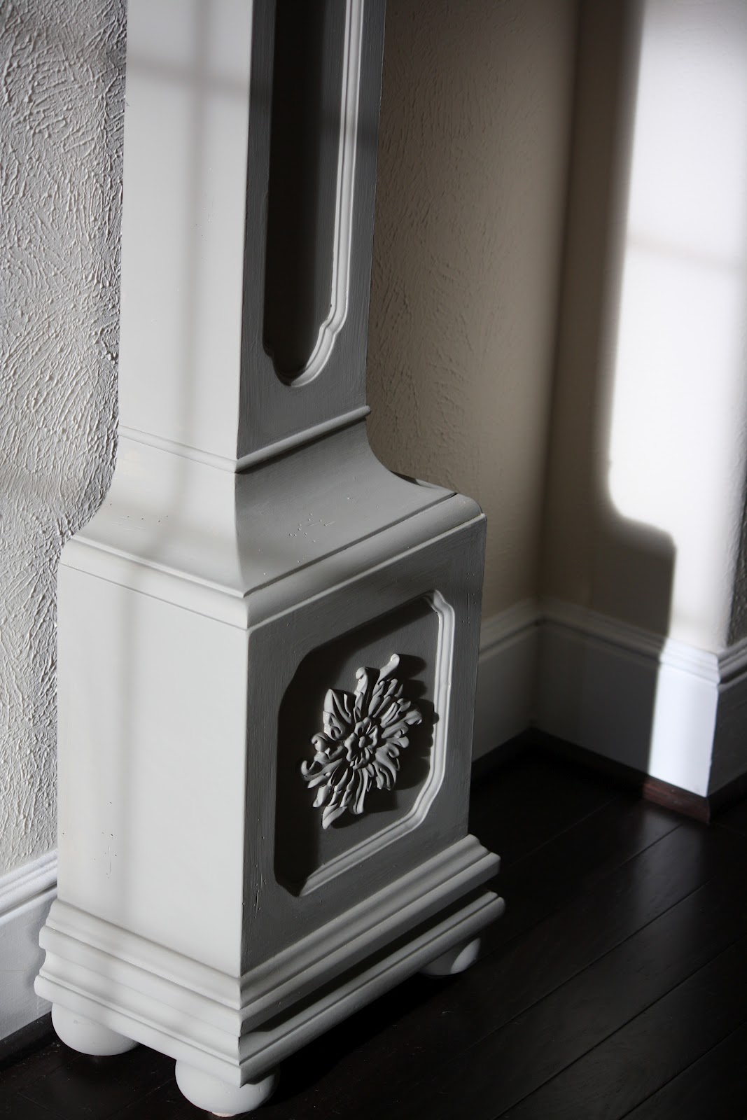 French linen is the perfect color for your clock. It looks very chic in that color. Did you say a map is covering your ceiling? Love that idea!